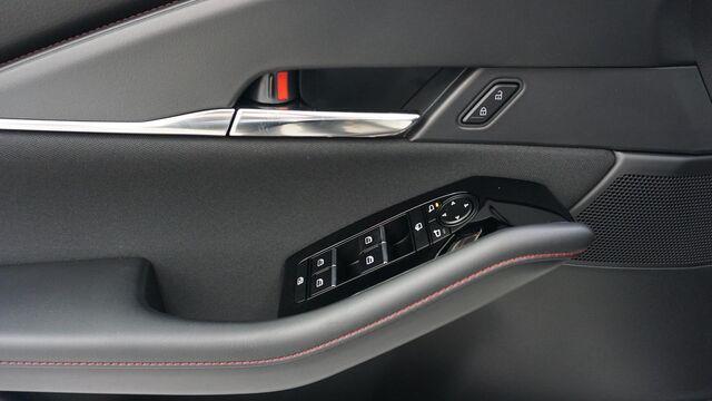 • Polster: Sitzbezüge (Stoff in Schwarz), Amaturenbrett und Mittelarmlehne mit roten Ziernähten